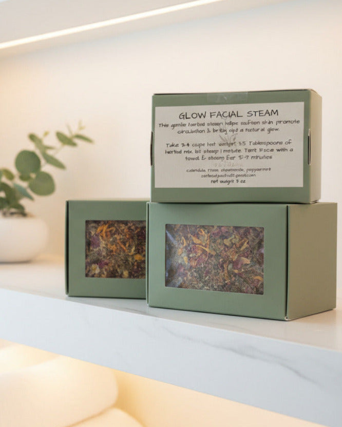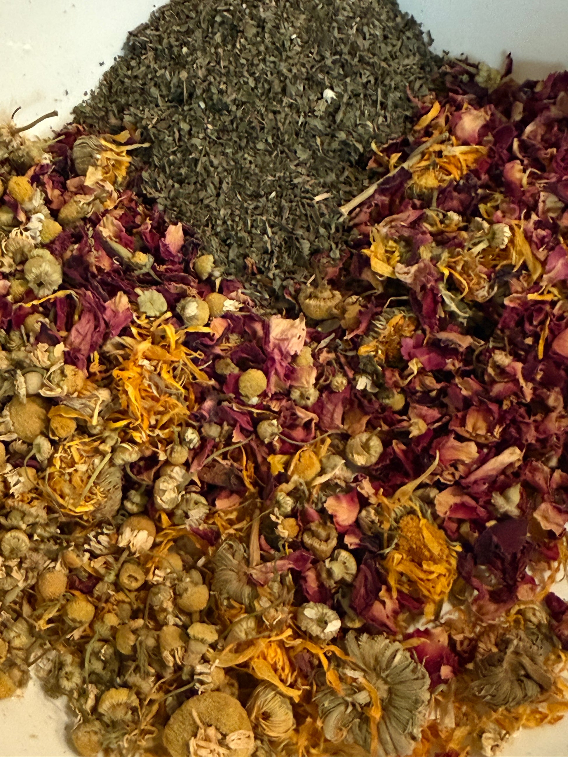 Boil 3-4 cups water & remove from heat, add 3.5 TBSP herbal mix, let steep 1 minute, Tent face with a towel, Steam for 5-7 minutes
