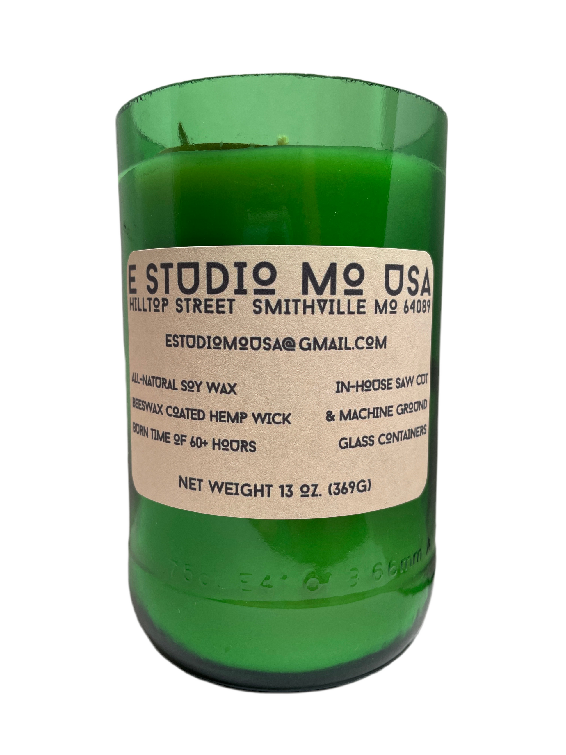 13oz, 60+ hour burn time, 3" diameter, single beeswax coated organic hemp wick, small-batch handcrafted candle by E Studio MO USA