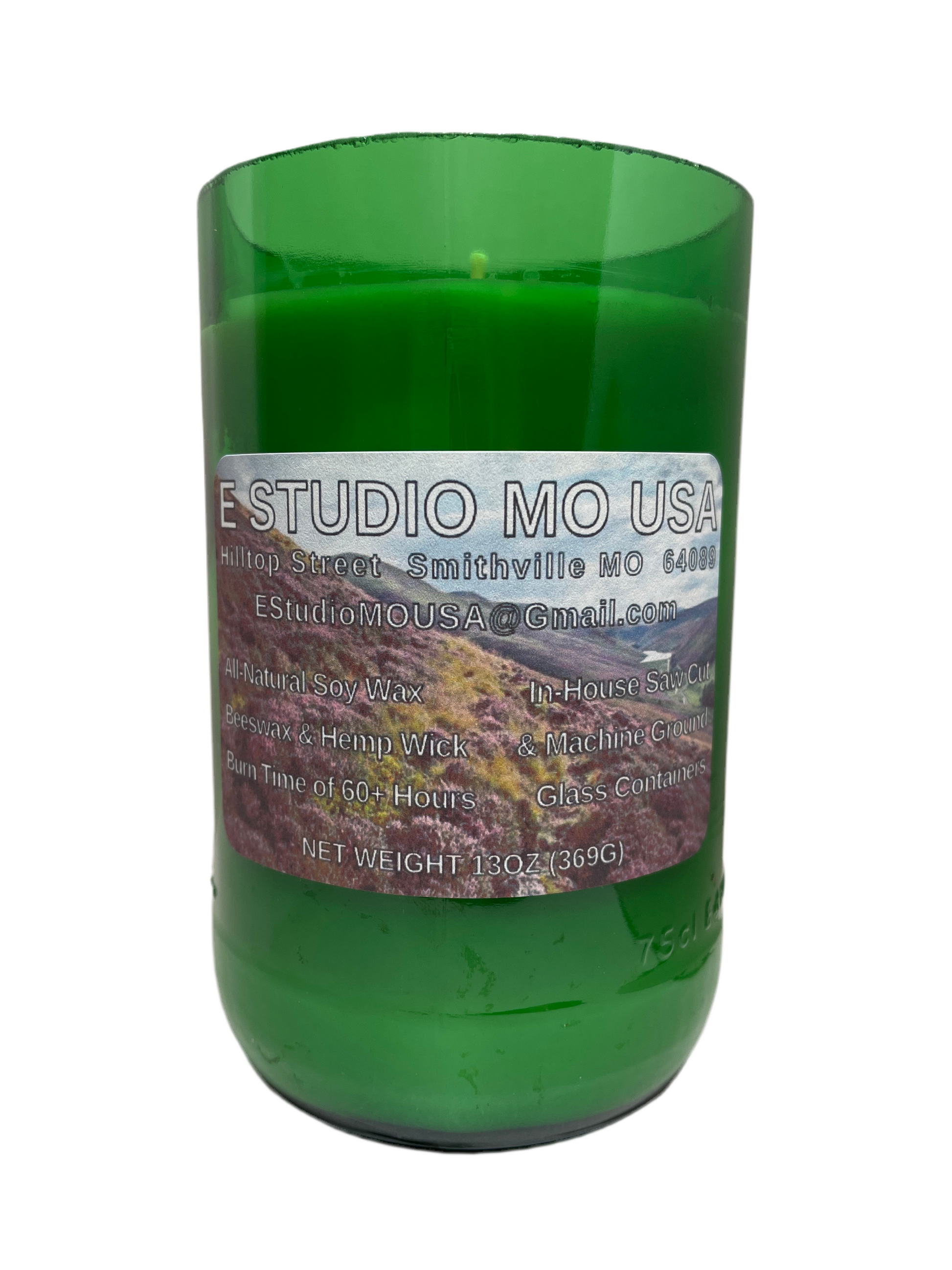 13oz, 60+ hour burn time, 3" diameter, single beeswax coated hemp wick, small-batch handcrafted candle by E Studio MO USA