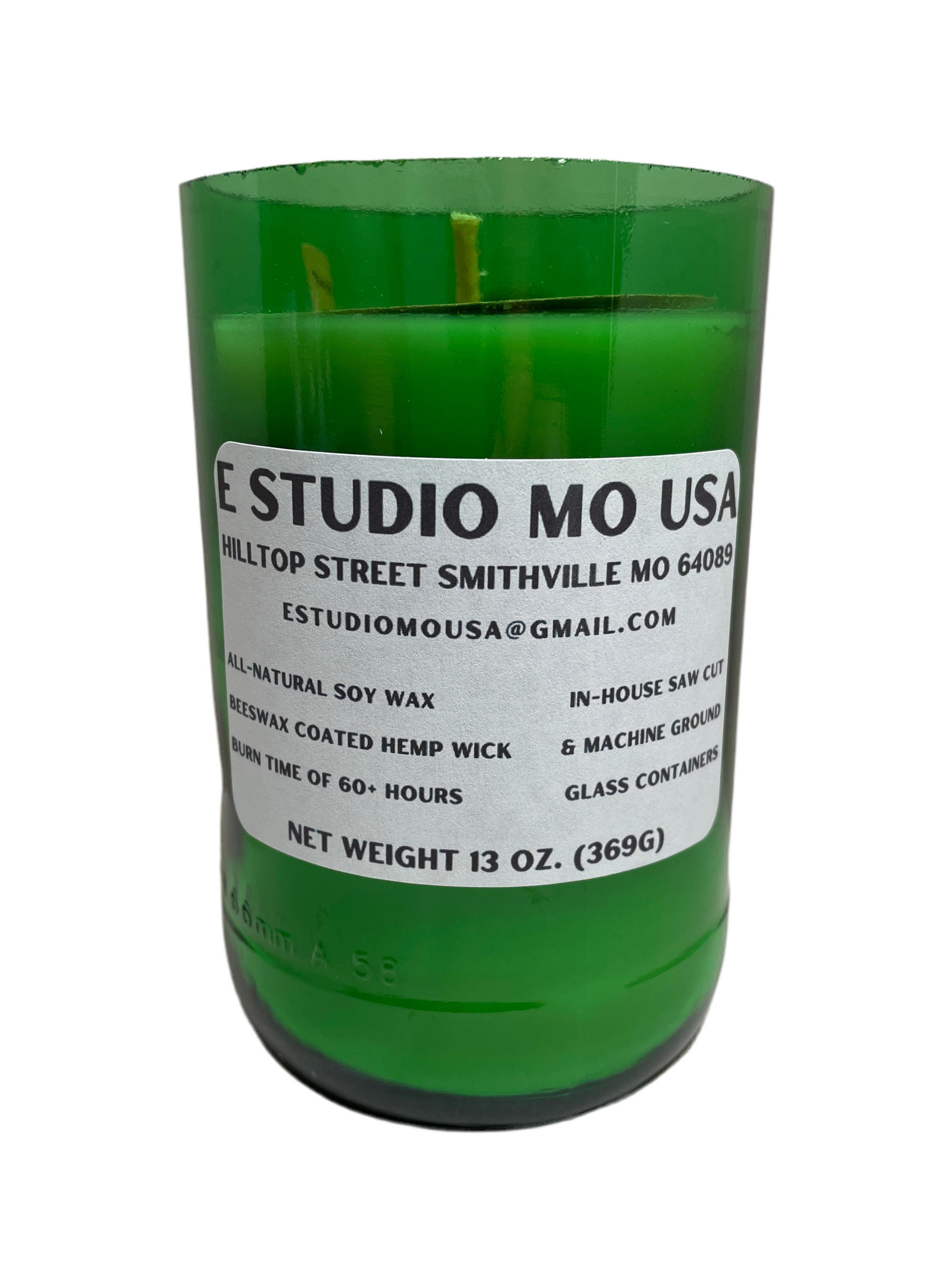 13oz, 60+ hour burn time, 3" diameter, single beeswax coated organic hemp wick, small-batch handcrafted soy candle by E Studio MO USA