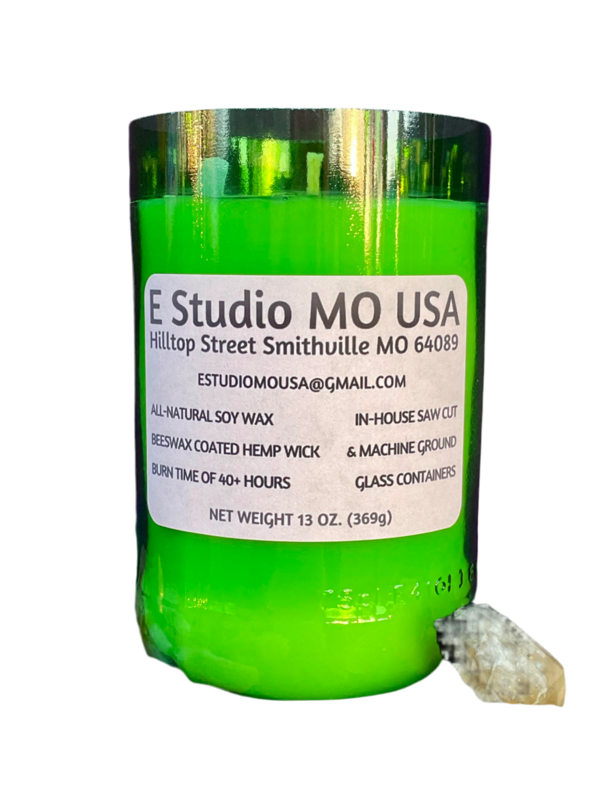 13oz, 60+ hour burn time, 3" diameter, single beeswax coated organic hemp wick, small-batch handcrafted candle by E Studio MO USA
