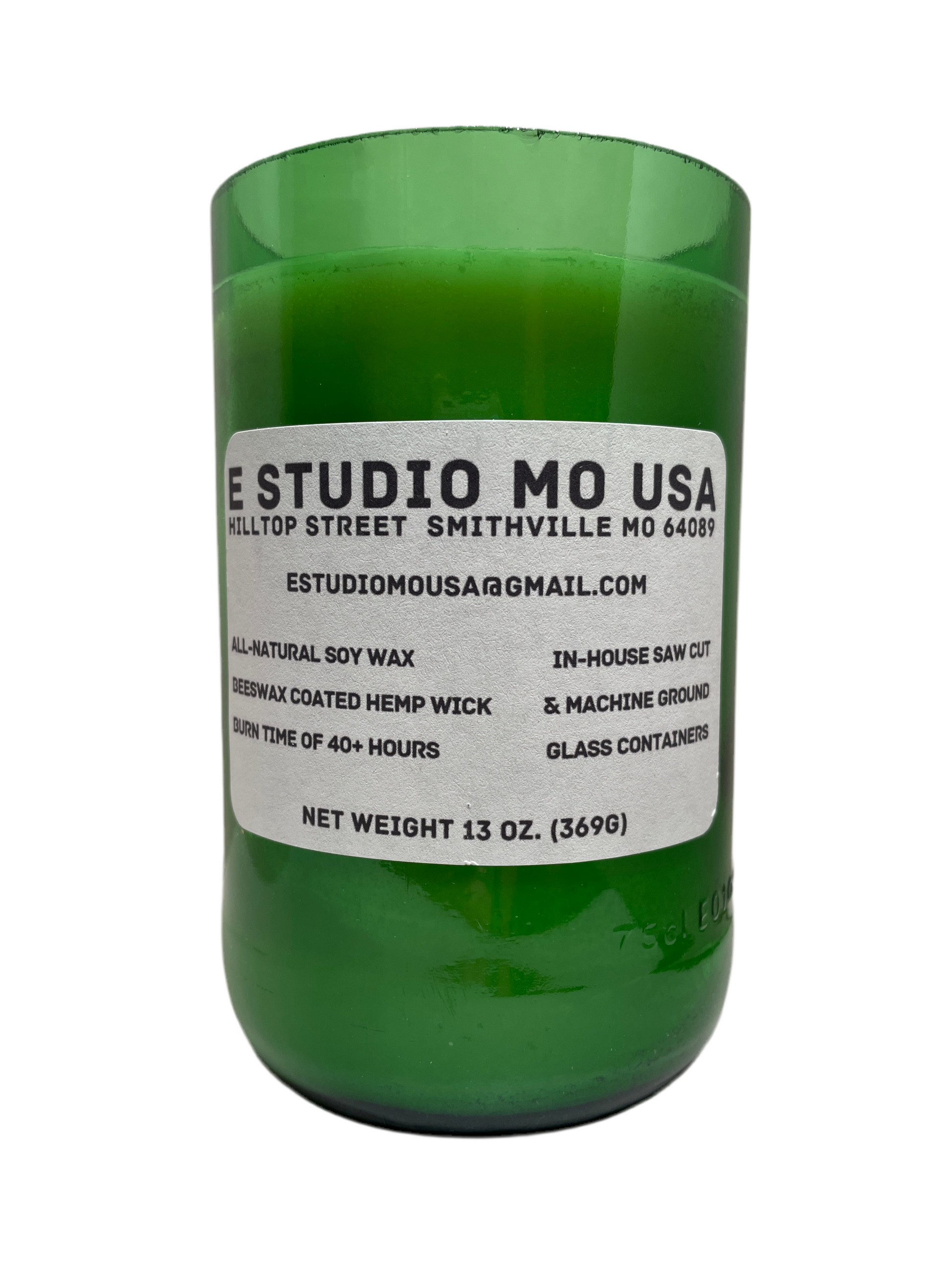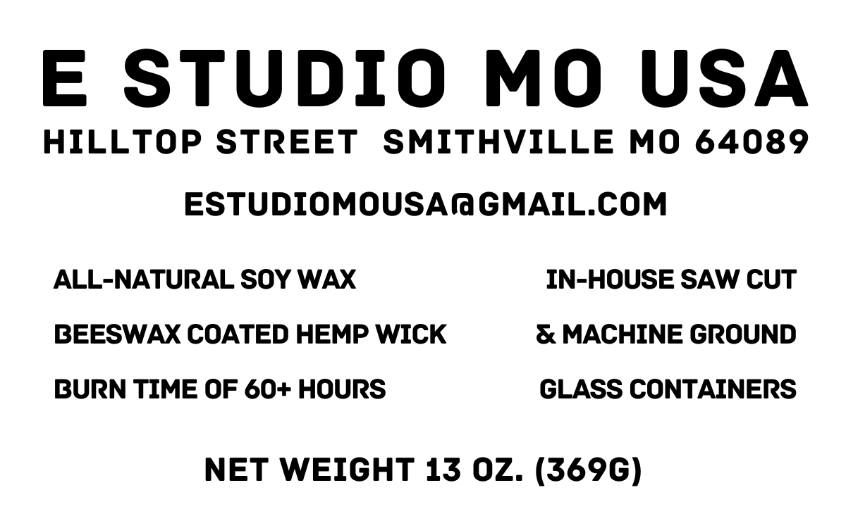 13oz, 60+ hour burn time, 3" diameter, single beeswax coated organic hemp wick, small-batch handcrafted candle by E Studio MO USA
